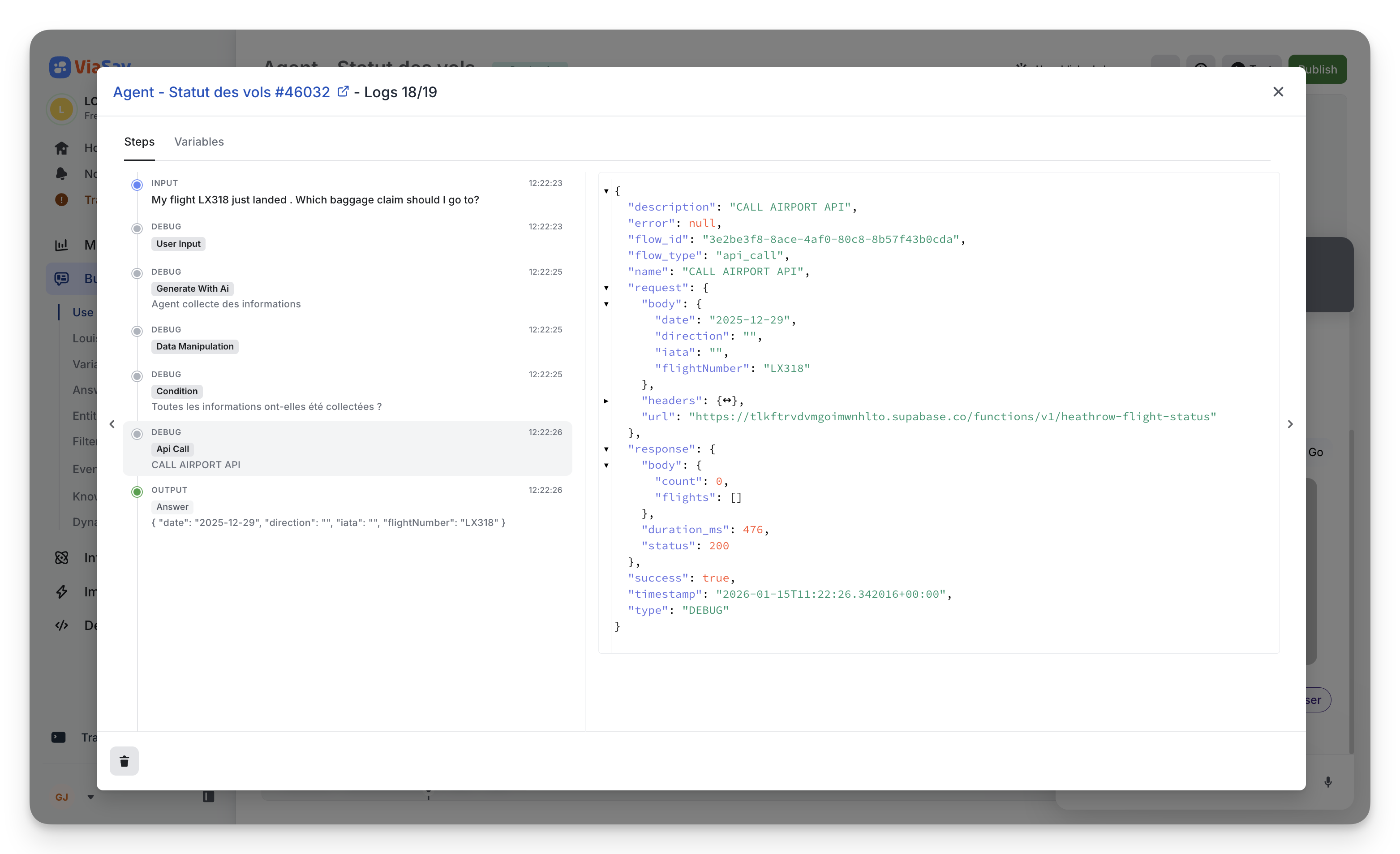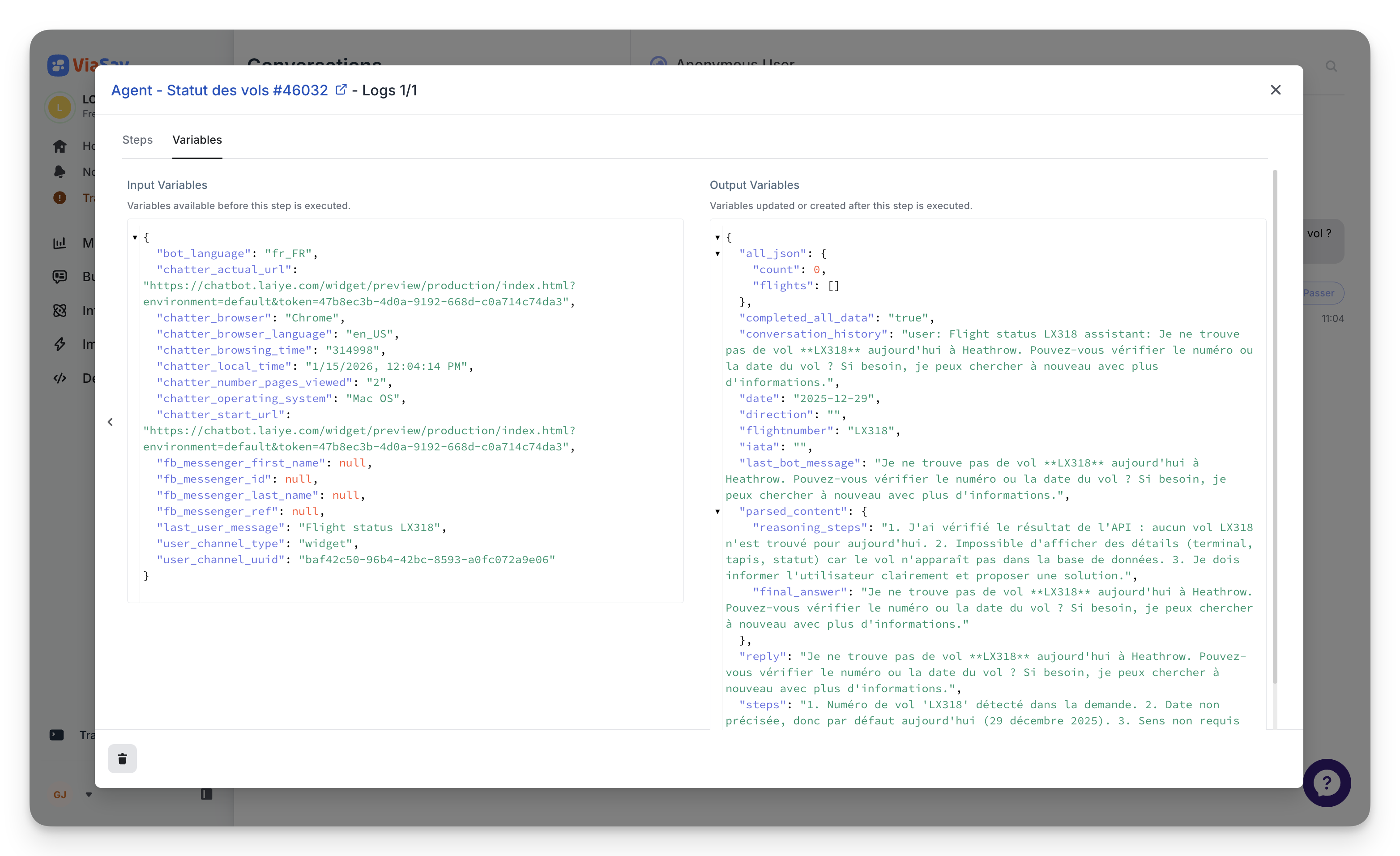You now get a complete execution trace of your bot: