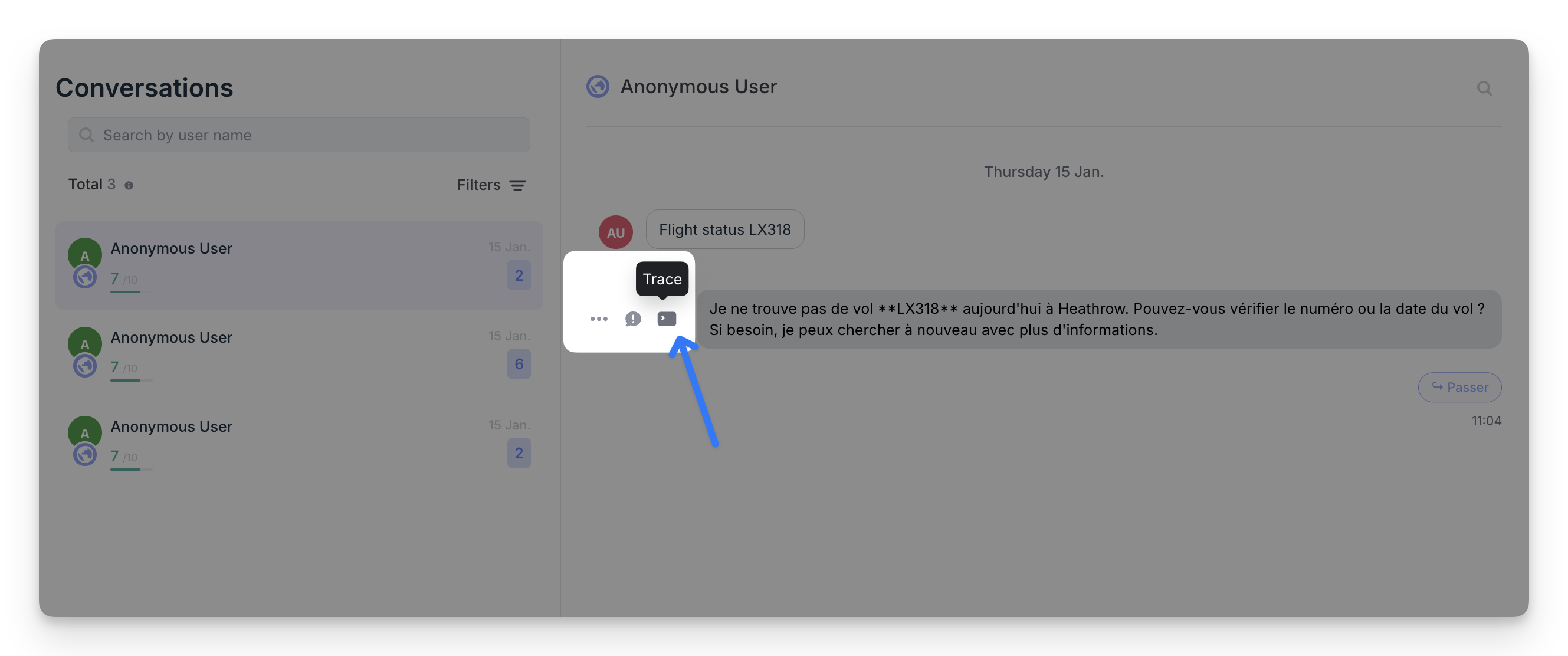 - In Conversations, click Trace to understand why the bot answered that way
