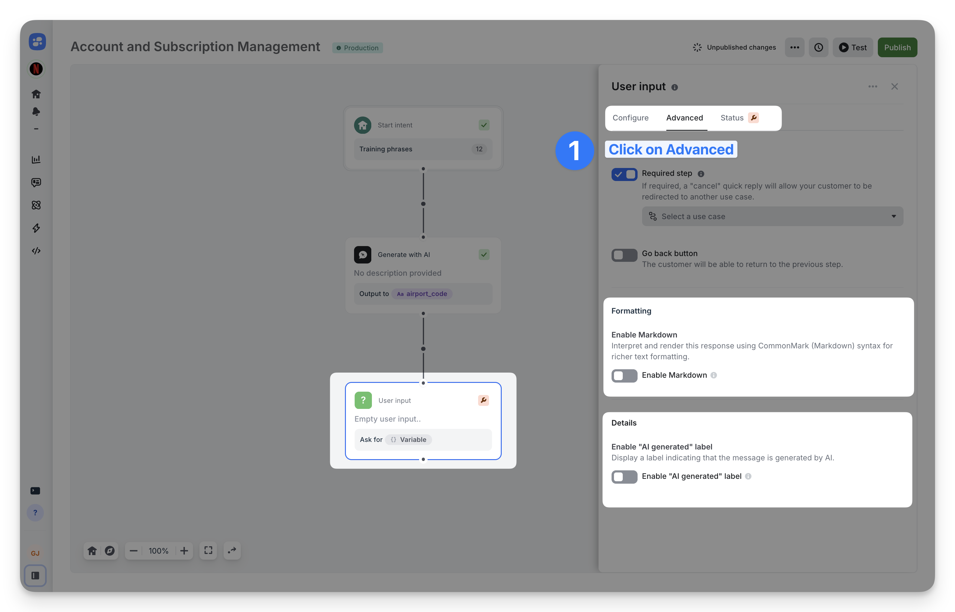 New Settings in User Input: Activate Markdown and AI Generated Label