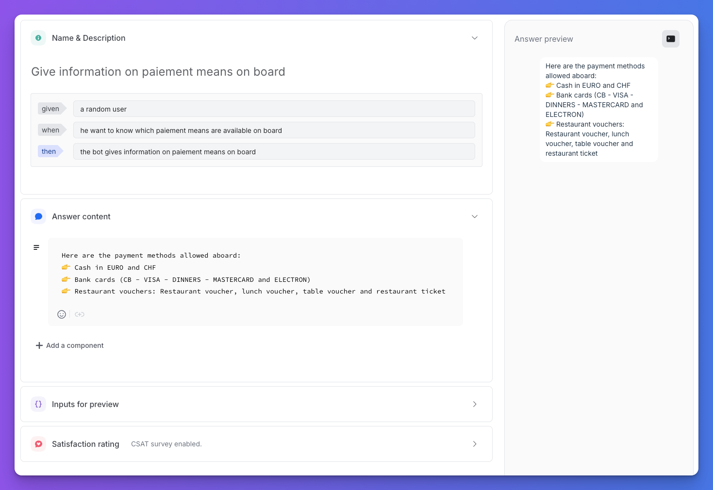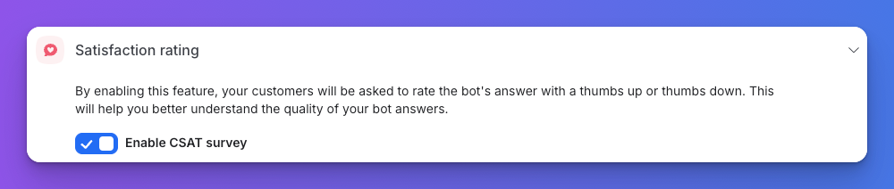 - Gather Feedback: Enable CSAT surveys for end-of-flow answers.