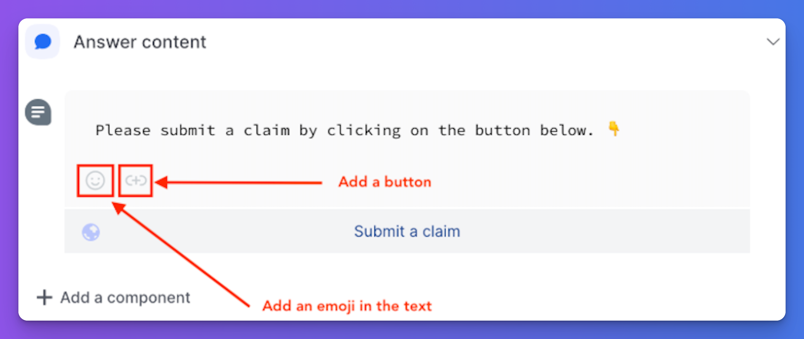 - Add/edit text, emojis, buttons, images, and other components.