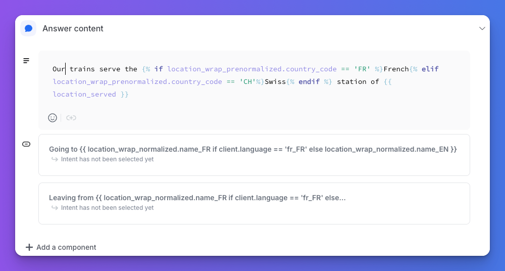 - Dynamic Content: Personalize responses with Jinja scripting to include variables like API data or user context.