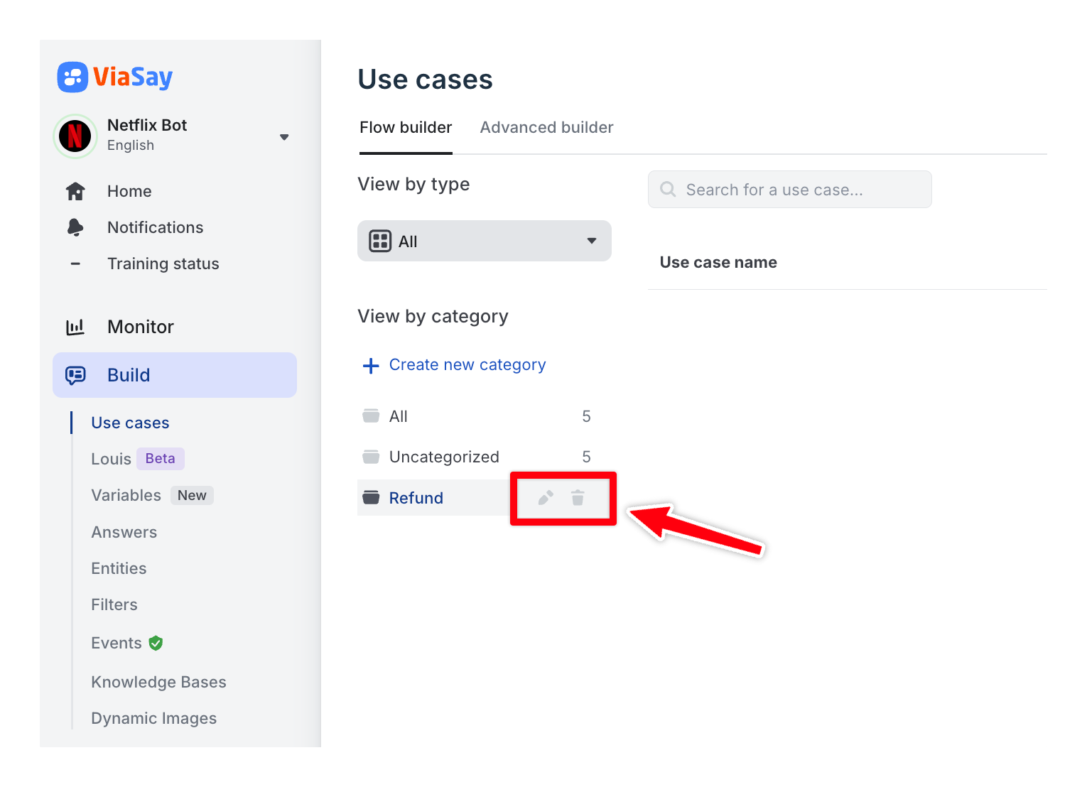 The use cases inside a deleted category won't be deleted — they’ll be moved to “Uncategorized”