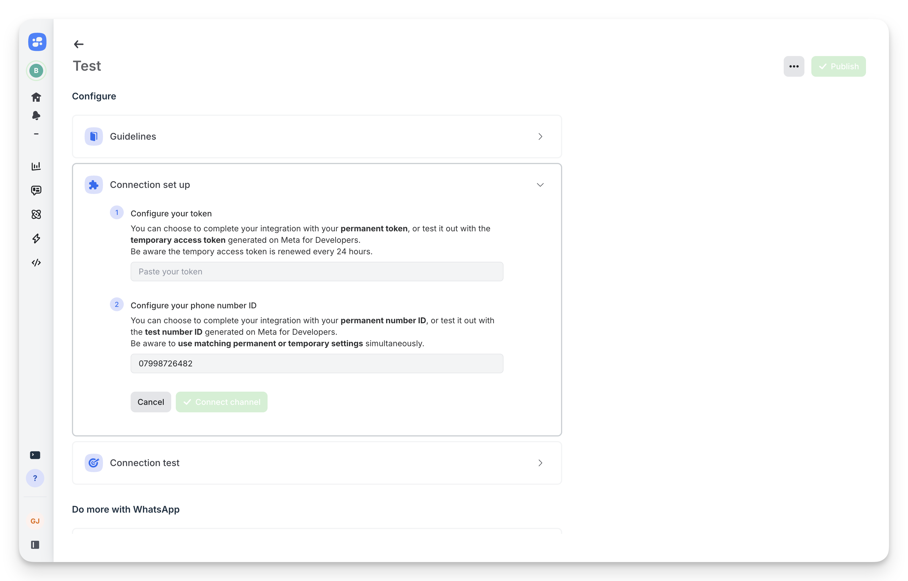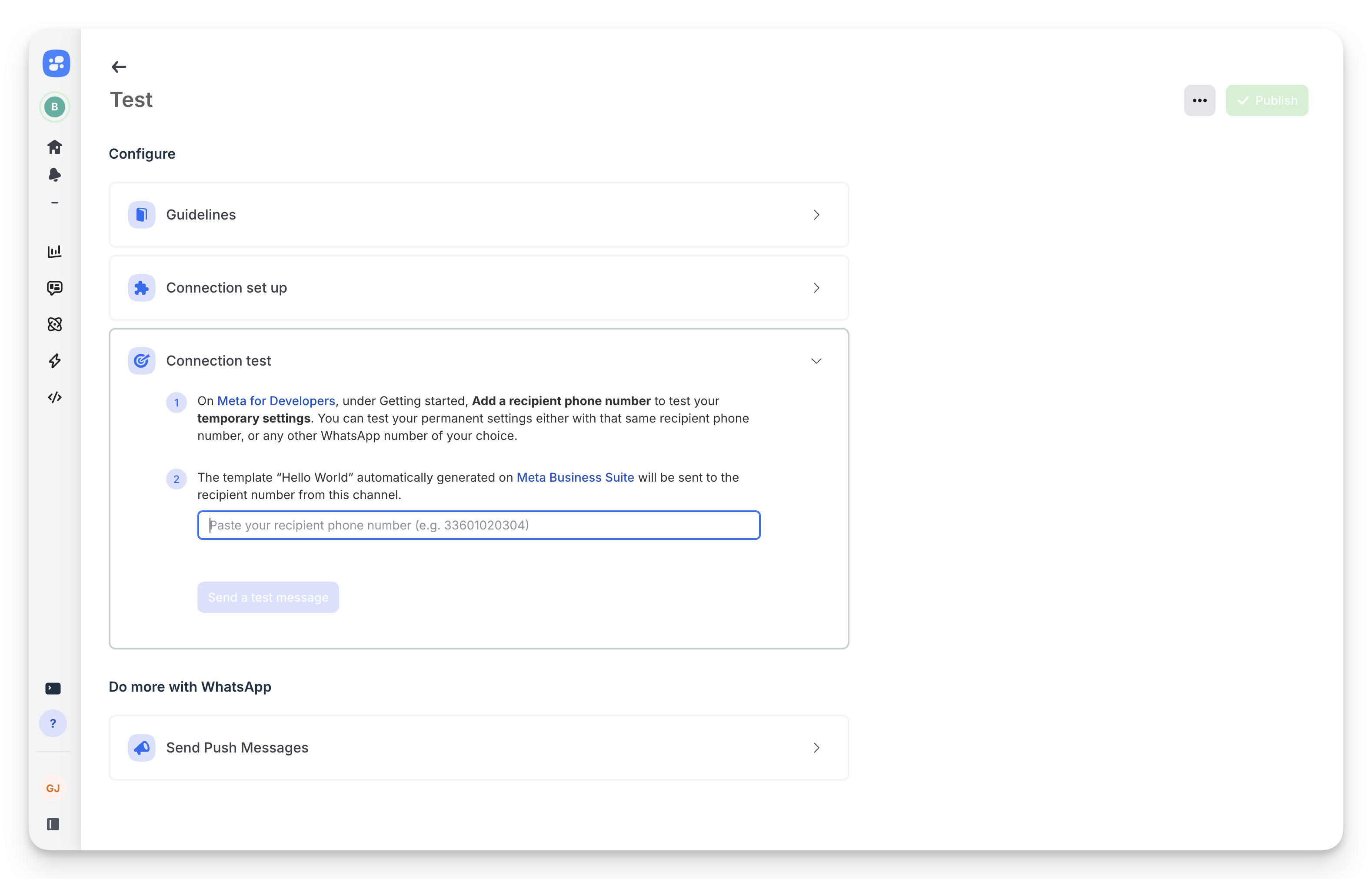 Test your connection with WhatsApp.